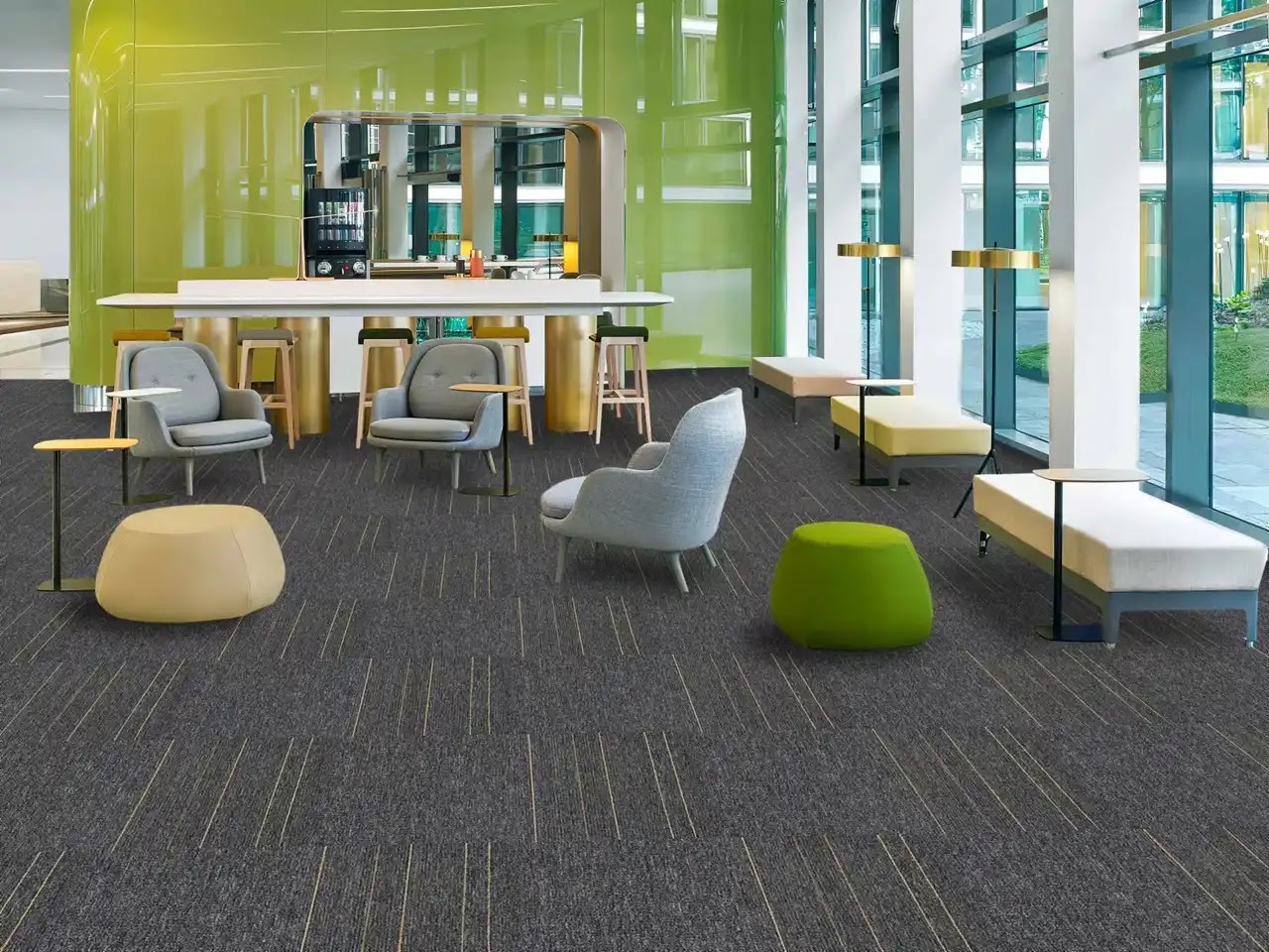Thiết kế linh hoạt: Cung cấp cả thảm cuộn và thảm tấm (carpet tile), có thể tạo các kiểu phối màu, hoa văn theo yêu cầu để phù hợp với nhận diện thương hiệu và không gian nội thất.